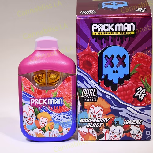 From the sweet, candy-like zing of Raspberry Blast to the funky, calming punch of Jokerz, this dual-chamber disposable delivers maximum flavor, full-spectrum effects, and unmatched flexibility. PackMan – Raspberry Blast X Jokerz 2g Disposable is made for vapers who want it all — in one sleek, rechargeable device.